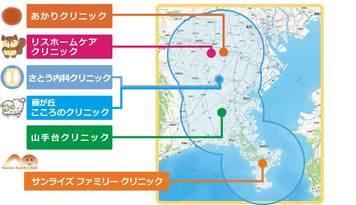 ユニメディコは神奈川県川崎市~横浜市から横須賀市~三浦市エリアを診療圏とし、医療・介護・福祉の資格職が連携し、小児から高齢者まで幅広い年代の方を対象にサービスを提供しています。