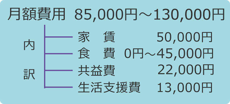 居住費 5,000円 (非課税) 介護サービス費 5,500円 (税込) |