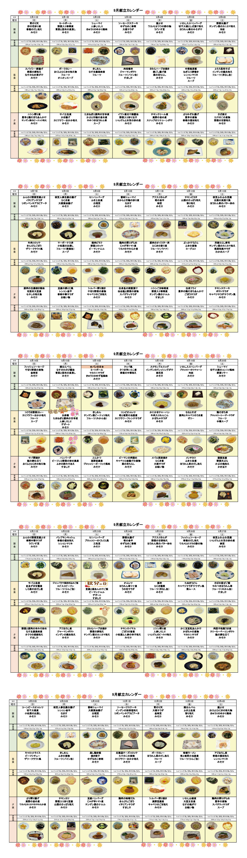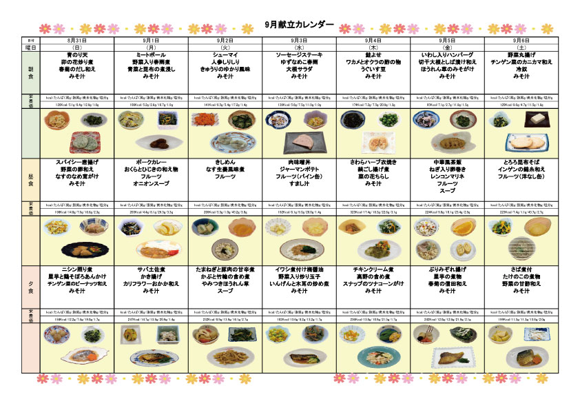 2025年9月の献立を掲載いたします。