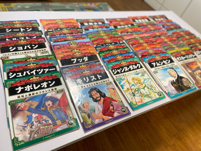 ご家庭でのコミュニケーションにも繋がり、次週にはどの本にしようかとお子様とお話しするお声も頂いています。現在80冊ほどの偉人の本(漫画含む)を用意しています。今後も興味関心を持つお子様が増えることを期待し、環境も更に整えてまいります。