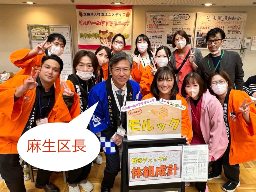 今回はリスホームケアクリニックとして、体組成計を使った健康チェック・ミニゲーム(モルック体験)を出展しました。雨天にも関わらず、私たちのブースへは延べ122名の方がお越し下さいました。麻生区長や他団体の方とご挨拶させて頂き、一緒に写真を撮ったり、体組成計で健康チェックも受けて頂きました。