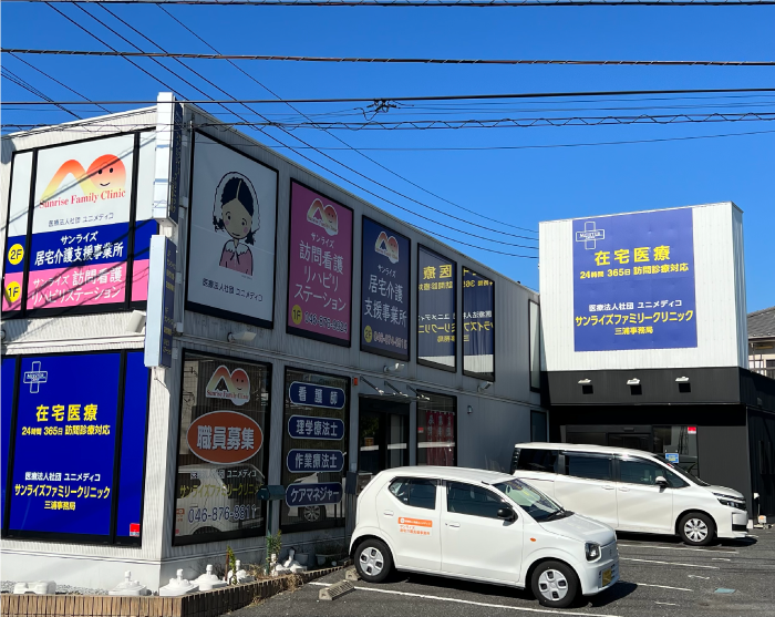 サンライズファミリークリニックの医師と当ステーションの看護師、理学療法士、作業療法士、言語聴覚士などのリハビリ専門職が緊密に連携し、専門性の高いサポートを実施しています。